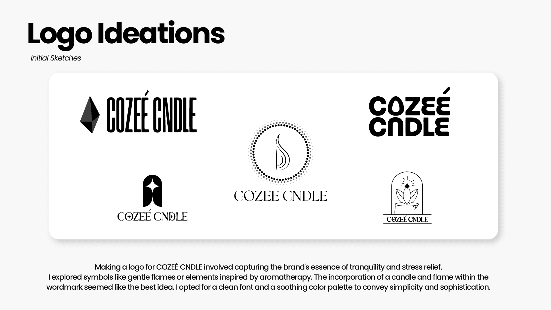 The objective was to craft a cohesive visual identity for Cozee Cndle that encapsulates its core values of calmness and wellness while resonating with its target audience—health-conscious individuals looking for relief from stress and anxiety. The visual identity needed to be minimalist yet impactful, designed for adaptability across packaging, promotional materials, and future product expansions like apparel.