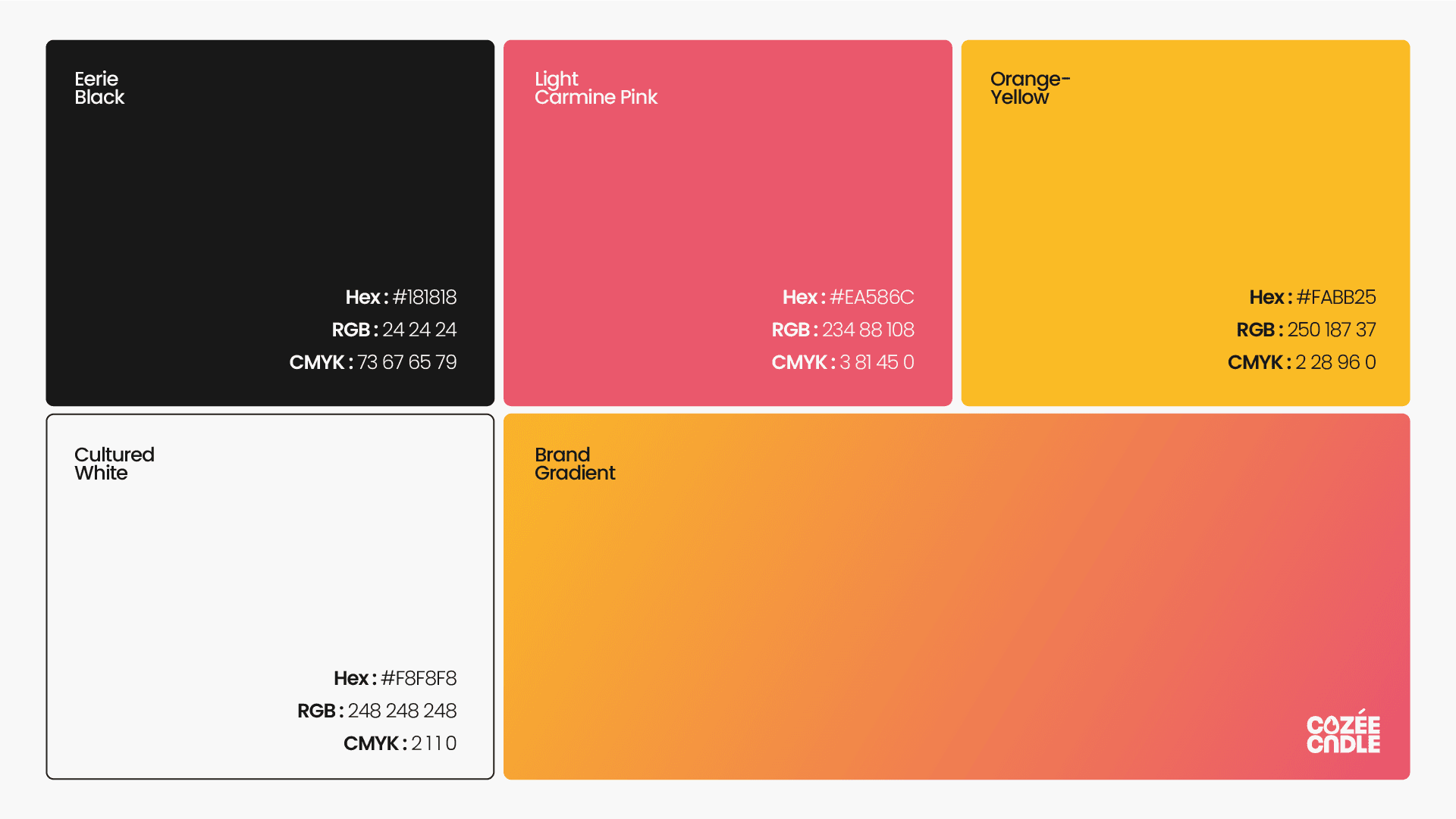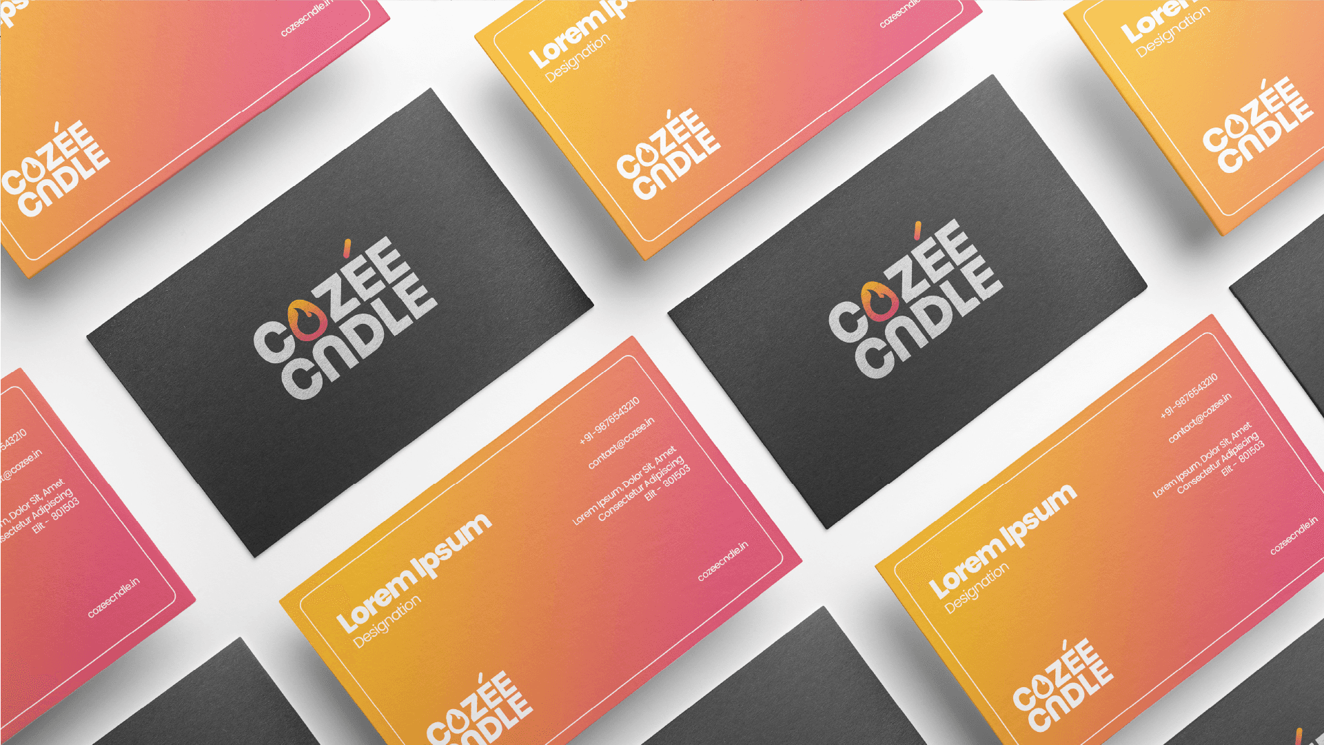 Creating Cozee Cndle's visual identity meant capturing how scents provide comfort and calm in stressful moments. Candles are more than decor—they’re a source of peace. I focused on a soothing, relatable design, using soft colors like pink & yellow, a clean typeface, and subtle candle-inspired elements. This human-centered approach reflects the brand’s mission to foster tranquility and wellness.
