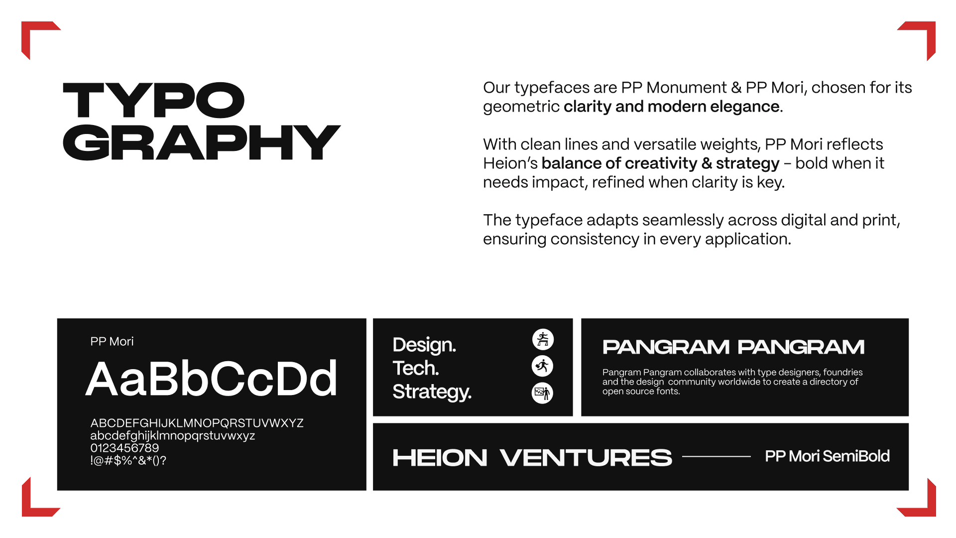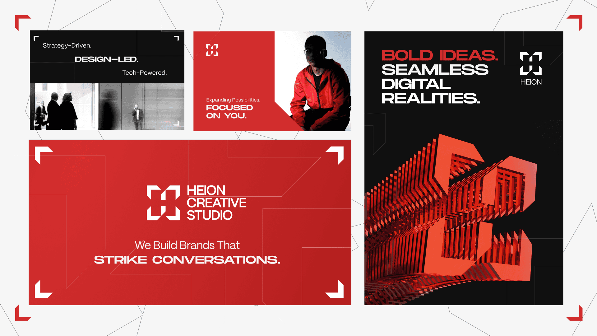 This project focused on developing a cohesive visual identity system that reflects Heion’s multidisciplinary nature, structured thinking, and bold yet balanced creative voice.