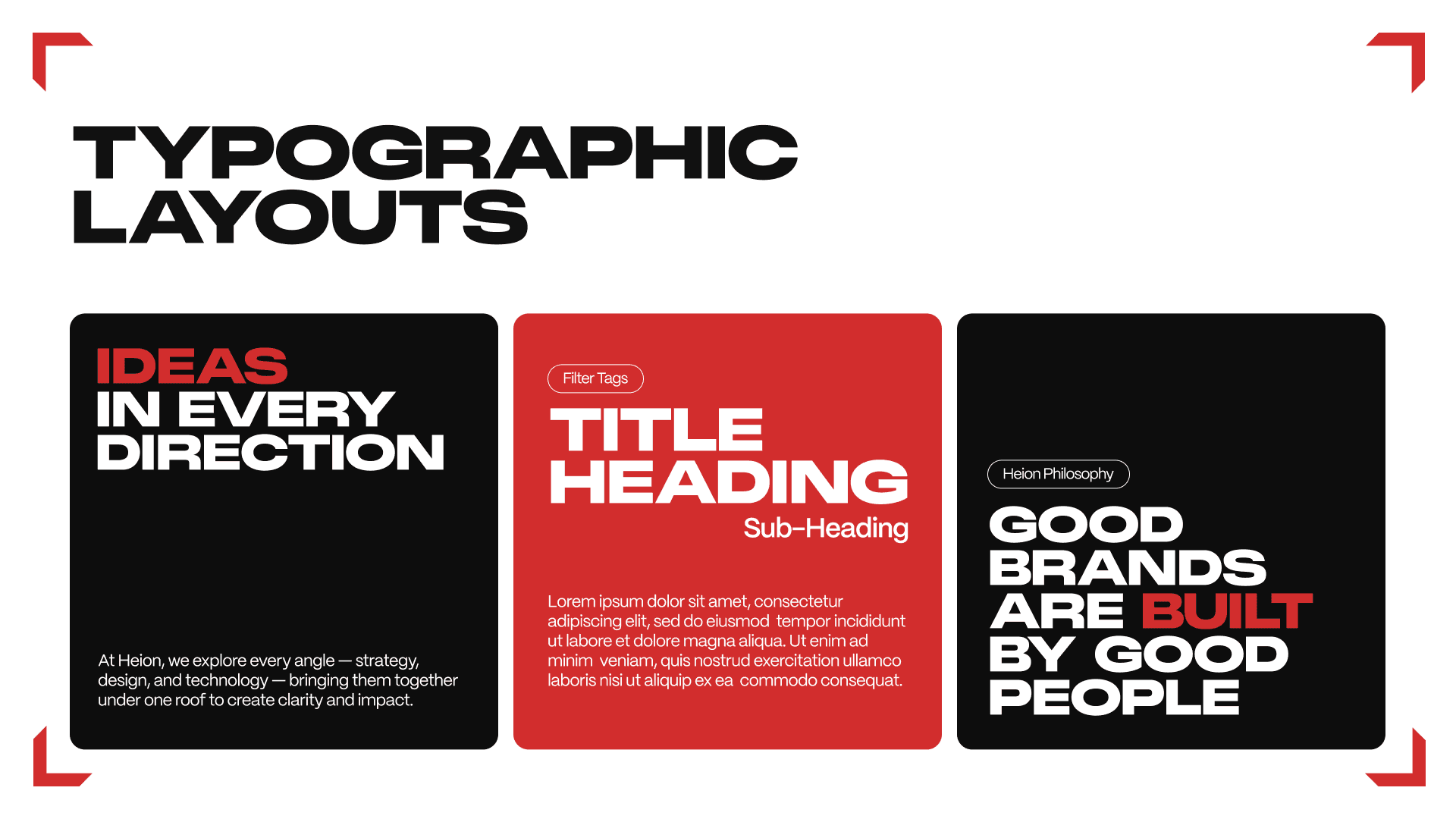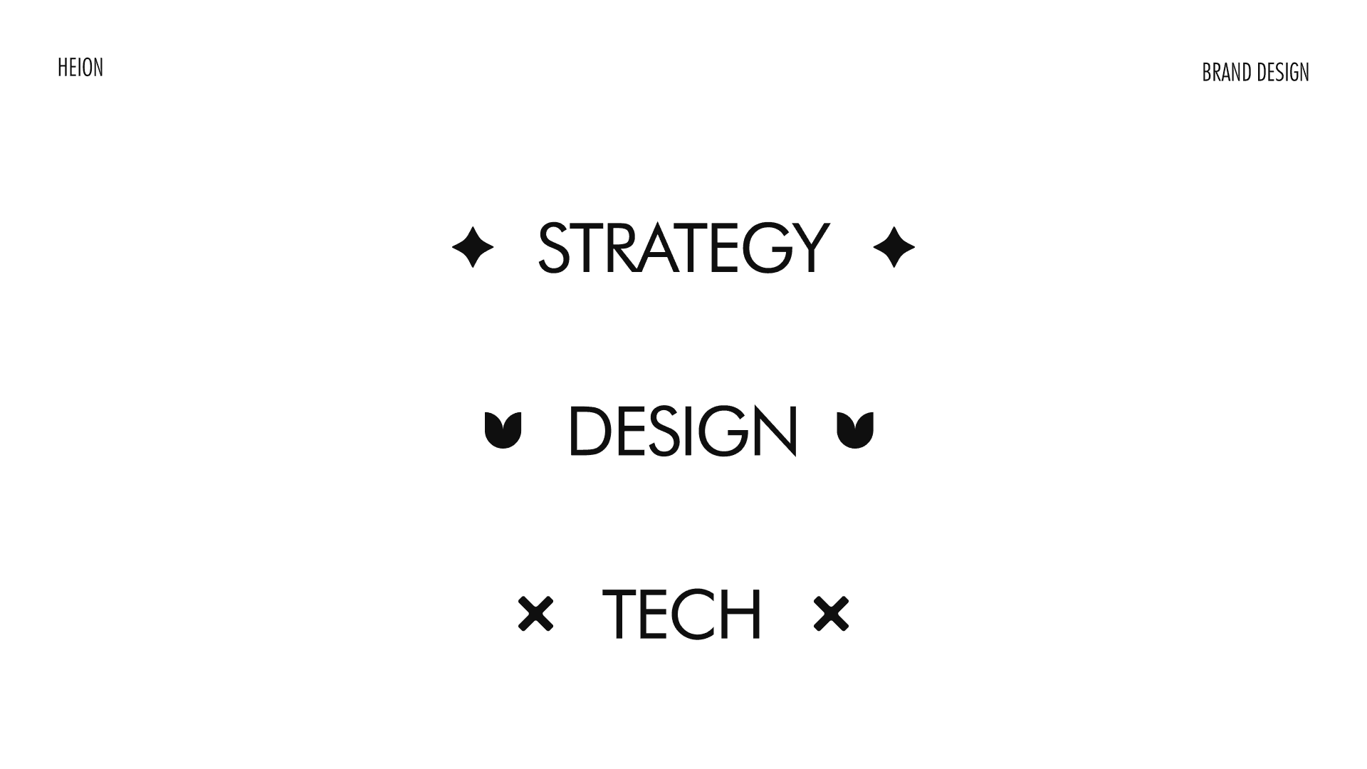 The Heion identity project evolved from message-led explorations to a system-led visual framework. Through multiple directions and iterations, the final solution centered on the four-arrow concept, which successfully translated Heion’s multidisciplinary and strategy-first approach into a scalable brand system.